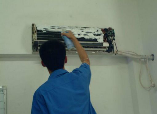 | 盐城市空调维修师傅给盐城市用户上门维修清洗空调。 |